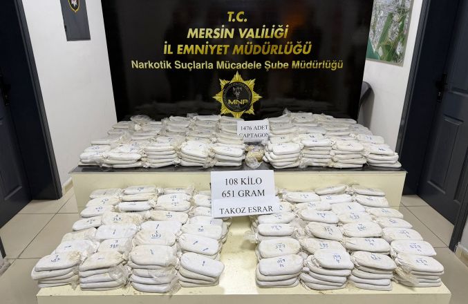 Mersin Emniyet Müdürlüğü birimleri Milli İstihbarat Teşkilatı (MİT) desteği ile zahit tacirlerine operasyon düzenledi. Operasyonda piyasa değeri 33 milyon lira olan 108 kilo 651 gram takoz esrar ele geçirildi. Operasyonda yakalanan yabancı uyruklu şüpheli tutuklandı.