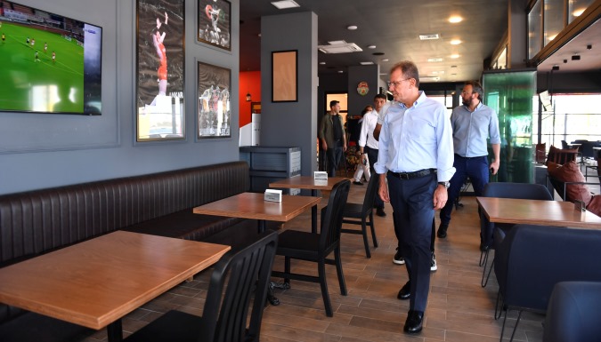 Hizmete giren ‘Tribün Kafe’ hakkında da bilgi veren Yıldız, “Faaliyete geçirdiğimiz bir diğer işletme de Tribün Kafe. Tribün Kafemizde daha çok spor konsepti hakim. Burası futbol, basketbol, bilardo, hentbol ve diğer tüm branştaki karşılaşmaları oturup rahatlıkla izleyebileceğiniz, spor konseptli keyifli bir kafemiz. Burada da yemek çeşitlerimiz oldukça geniş. Hamburger, pizza, makarna, tavuk kanat ve parçacıkları gibi birçok yeme-içme alanında ürünlerimiz bulunmaktadır” diye konuştu.