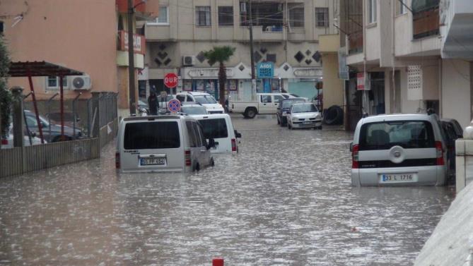 Meteorolojinin uyardığı kuvvetli yağış Silifke ilçesinde de etkili oldu. Sabah saatlerinde başlayan ve saatte metre kareye 38 kilogram yağışın düştüğü ilçede cadde ve sokaklarda su birikintisi oluştu. Sağanak nedeniyle Atatürk evi ve çevresi tamamen yağmur suyu ile dolarken, Taşucu mahallesinde bir çok iş yeri çamurlu suyun altında kaldı.