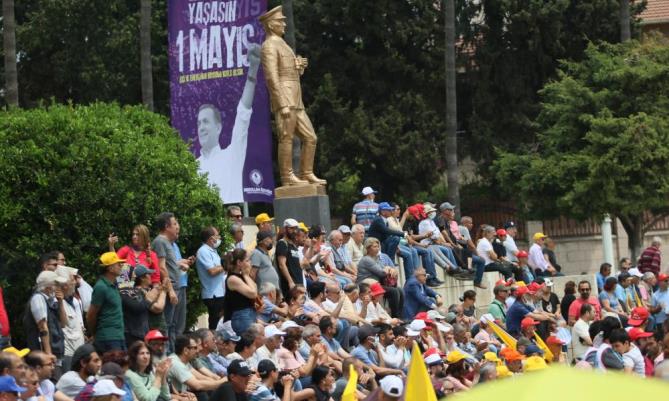 Mersin’de saat 10.30’dan itibaren eski Tevfik Sırrı Gür Stadyumu önünde toplanan işçi ve memur sendikaları, odalar, dernekler, siyasi partiler ve farklı grupların temsilcileri, buradan İnönü Bulvarı’nı takiben Cumhuriyet Meydanı’na kadar yürüdü.