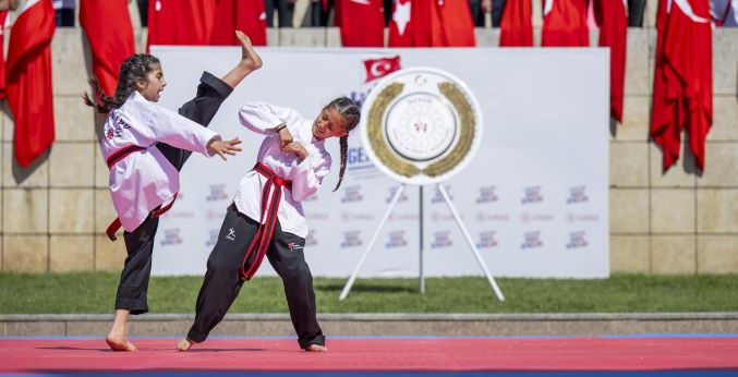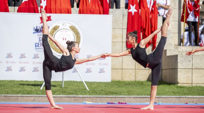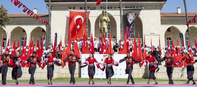 Program boyunca Cumhuriyet Meydanı’nda Türk Bayrakları dalgalandı, marşlar hep bir ağızdan söylendi. 7’den 70’e her yaştan Mersinli’nin katılım gösterdiği etkinlikte, Mersin Büyükşehir Belediyesi Halk Oyunları Ekibi, Anadolu’nun dört bir yanından derlenen geleneksel oyunlarını sergiledi. Gösteride; renkli kostümler, ritmik ezgiler ve uyumlu figürlerle izleyenlere görsel bir şölen sunuldu. Gösterilerin ardından, genç sporcular tarafından hazırlanan ritmik jimnastik, taekwondo, karate ve birçok sportif branşlarda sergilenen performanslar büyük beğeni topladı.