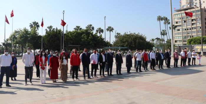 Mersin’de 19 Mayıs Atatürk’ü Anma, Gençlik ve Spor Bayramı, korona virüs salgını nedeniyle alınan önlemler altında kutlandı. Cumhuriyet Meydanı’nda düzenlenen törene belirli sayıda kişi katıldı. Gençlik ve Spor İl Müdürlüğü tarafından düzenlenen törende, korona virüs salgını nedeniyle alınan önlemler dikkat çekti. Özellikle sosyal mesafeye dikkat ederek tören alanında yerini alan katılımcıların maske taktıkları görüldü. Saygı duruşunda bulunularak İstiklal Marşı’nın okunmasından sonra Gençlik ve Spor İl Müdürü Ökkeş Demir, Atatürk Anıtı’na çelenk sundu. Çelenk sunumunun ardından Cumhurbaşkanı Recep Tayyip Erdoğan’ın bayram mesajı okundu.