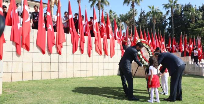 23 Nisan Ulusal Egemenlik ve Çocuk Bayramı kutlamaları, sabah saat 9.00’da Mersin İl Milli Eğitim Müdürü Adem Koca tarafından Cumhuriyet Meydanı’nda Atatürk Anıtı’na çelenk sunulmasıyla başladı. Ardından kutlamalar aynı meydanda devam etti. Akdeniz Bölge ve Garnizon Komutanlığı Bandosu’nun seslendirdiği şarkılara, alanı dolduran yüzlerce çocuk, ellerinde Türk bayrakları ile eşlik ederek bayram coşkusu yaşadı. Konserin ardından başlayan resmi törene, Mersin Valisi Ali İhsan Su, Akdeniz Bölge ve Garnizon Komutanı Tuğamiral Fuat Gedik, Büyükşehir Belediye Başkanı Vahap Seçer, protokol üyeleri ve askeri erkan katıldı.