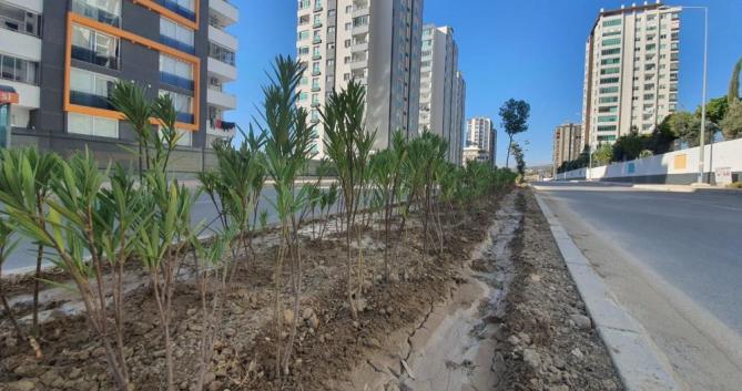Mersin Büyükşehir Belediyesi Park ve Bahçeler Dairesi ekipleri, Tarsus ilçesi Ümit Yaşar Oğuzcan Bulvarı üzerinde yürüttüğü yeşillendirme çalışması kapsamında, 5 bin adet zakkum fidanının dikim çalışmasına devam ediyor.