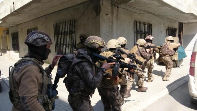 Gözaltına alınan şahıslar, işlemleri yapılmak üzere emniyete götürüldü. (Mersin Times)