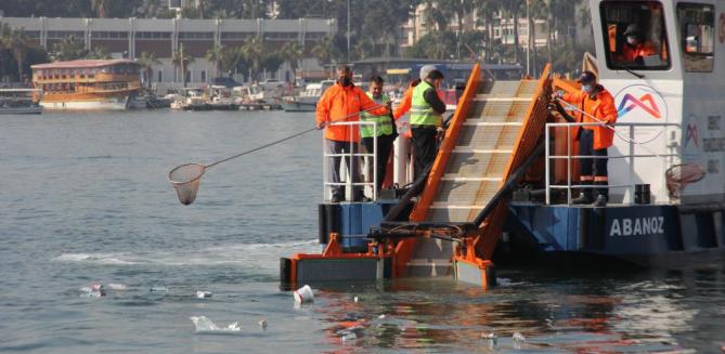 Mersin Büyükşehir Belediyesi, denizi temiz tutmak için yaklaşık 40 personelle gece-gündüz çalışmalarını sürdürüyor. Hem havadan hem de denizden çalışma yürüten ekipler, bir yandan denizdeki atıkları toplarken bir yandan da denizleri kirletenlere anında müdahale ediyor. Çevre Koruma ve Kontrol Dairesi Başkanlığına bağlı ekipler, 3 deniz denetim aracı, bir deniz süpürgesi, bir deniz denetim teknesiyle bir yandan liman bölgesindeki katı atıkları toplarken, bir yandan da limana yanaşan ya da açıkta bekleyen gemilerin oluşturduğu kirlilikleri denetliyor. Ayrıca, hem gece hem de gündüz görüşü olan dron ile havadan da denetim yapan ekipler, denizi kirleten tekneleri ve gemileri tespit ederek, idari para cezası uyguluyor.