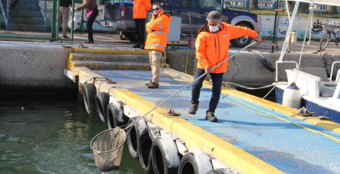 Çevre Koruma ve Kontrol Dairesi Başkanı Bülent Halisdemir, denizi temiz tutmak için yaptıkları çalışmaları anlattı. ‘Mersin Büyükşehir Belediyesi olarak denizimizi çok önemsiyoruz’ diyen Halisdemir, Başkan Vahap Seçer’in bu konuda çok hassas olduğunu söyledi. Hedeflerinin, denizin kirlenmesinin önüne geçmek, kirletenleri de uyarmak ve idari yaptırım uygulamak olduğunu vurgulayan Halisdemir, “Bizim sınırlı bir alanımız var. Sınırımızın genişletilmesi için bakanlığa başvurularımızı yaptık. Eğer genişlerse tüm ilde de görevimizi genişletmek istiyoruz. Özellikle liman bölgesinde yüzeyde oluşan katı atıkları, kirlilikleri topluyoruz. 2021 yılında denizden 400 metreküpe yakın katı atık topladık. Bunlar, yüzeydeki yoğunluğu çok hafif olanlar. Hacimsel olarak çok büyük bir kütle olarak görebilirsiniz. Bu yıl da şu ana kadar 15-20 metreküp topladı arkadaşlarımız” dedi.