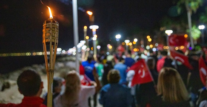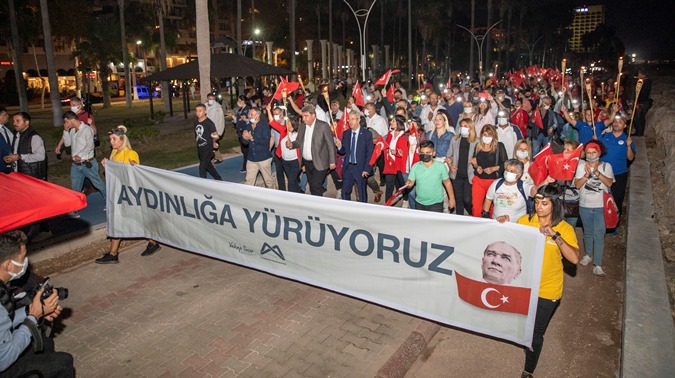 Akşam saatlerinde ise HiltonSA önünden Kültür Park boyunca konser alanına doğru kortej yürüyüşü yapıldı. “Aydınlığa Yürüyoruz” pankartının açıldığı, Türk bayrakları ve meşalelerin taşındığı yürüyüşe; CHP Milletvekilleri Cengiz Gökçel ve Alpay Antmen, Büyükşehir Belediyesi daire başkanları, CHP Mersin il ve ilçe örgütü üye ve temsilcileri ile vatandaşlar katıldı. (Mersin Times)