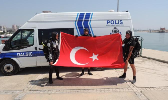 İl Emniyet Müdürlüğünden yapılan açıklamaya göre, Deniz Limanı Şube Müdürlüğü Su Altı Grup Amirliği’ne bağlı dalgıçlar, 1 Temmuz Denizcilik ve Kabotaj Bayramının 95’inci yıl dönümü kutlamaları kapsamında dalış etkinliği düzenledi. Etkinlikte polisler denizin dibinde Türk bayrağı açarken, kirliliği de görüntüledi. Su altı kamerasıyla çekilen görüntülerde denizin dibinde Türk bayrağı kirlilikten zor gözükürken, özellikle çok miktarda küçük plastik ve poşetlerin olduğu görüldü.