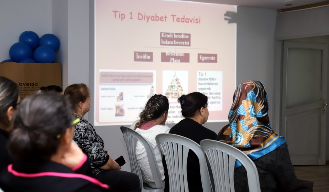 Turgut Reis Mahallesi Kültür ve Sanat Evi’nde organize edilen ve Uzman Diyetisyen Seda Koşar’ın sunum yaptığı seminer öncesi, katılımcı mahalleli kadınların boy-kilo endeksi ile kan şekeri değerleri ölçüldü. Sunumunda, diyabet hastalığı ile ilgili doğru bilinen yanlışlara dikkat çeken Koşar, “Şeker hastalığının tıbbi adı diyabettir. Peki, bu hastalık sadece yaşlılıkla mı ortaya çıkar? Hayır. Diyabet, çok küçük yaşlarda hatta bebeklerde bile görülebilen bir hastalıktır” dedi.