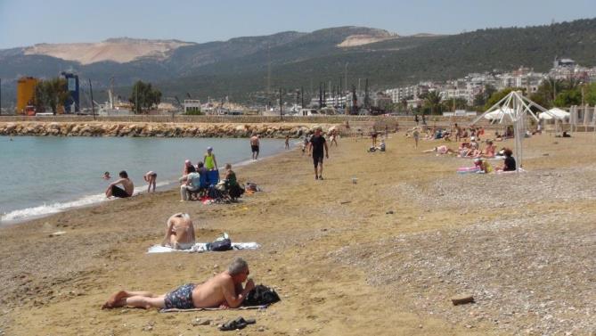 Kırsalda kar keyfi yaşanırken, ilçe merkezinde ise güneşli havayı fırsat bilenler ilçenin Taşucu ve Atakent plajlarında denize girdi. Hava sıcaklığın 35, deniz suyu sıcaklığın ise 20 derece ölçüldüğü ilçede vatandaşlar, güneşli havanın tadını denize girerek ve güneşlenerek çıkardı. Kumlara, şezlonglara uzanan vatandaşlar, kitap okudu ve uzun süre güneşlendi. Bazı vatandaşlar da sahil kenarında yürüyüş ve spor yaptı. Sahil kenarlarında oynayan çocuklar renkli görüntüler oluşturdu.