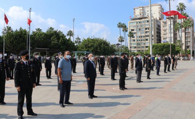 Cumhuriyet Meydanı’nda düzenlenen törene belirli sayıda kişi katıldı. İl Jandarma Komutanlığı tarafından düzenlenen törende, korona virüs salgını nedeniyle alınan önlemler dikkat çekti. Özellikle sosyal mesafeye dikkat ederek tören alanında yerini alan katılımcıların maske taktıkları görüldü.