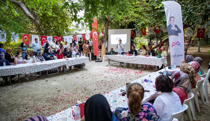 Geçen yılki toplantılarda kadınlardan en çok aldıkları talebin ‘Kadın Üretici Pazarları’ olduğunu belirten Meral Seçer, bir yıl içerisinde bu alanda önemli çalışmaların hayata geçirildiğine dikkat çekerek, “Kadınlar hem burada hem de Mersin’de üretici pazarlarına katılma imkanı buldu. Belki aranızda ‘bunları duymadım’ diyenler vardır. İşte bu toplantılarımızın amacı yapılan hizmetlerden duymayanların da faydalanması. Duyanların duymayanlara anlatması. Biz 13 ilçeyi dolaştığımızda pek çok veriye de sahip olduk. Siz kadınlarımızdan gelen talepler çok önemliydi. Oradan çıkan sonuç da belediyenin Kadın ve Aile Hizmetleri Dairesi ve ilgili dairelerin birtakım hizmetleri yapmasına vesile oldu” dedi.