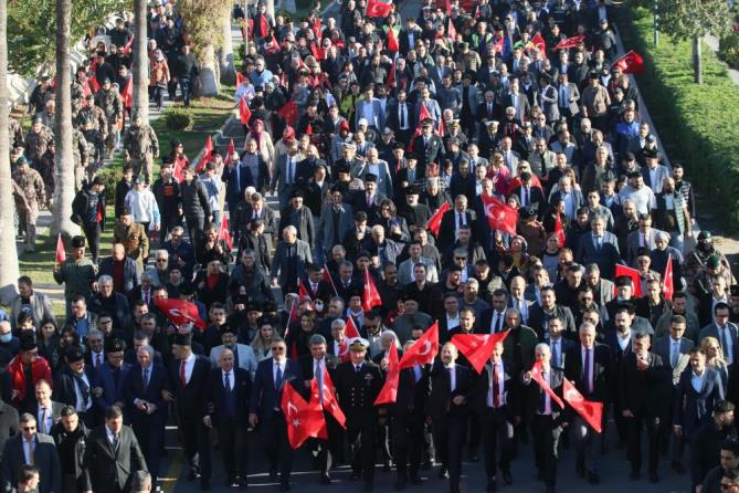 Cumhurbaşkanı Recep Tayyip Erdoğan’ın kutlama mesajının okunduğu törende, öğrenciler şiirler okudu, Büyükşehir Belediyesi Halk Oyunları ekibi gösteri gerçekleştirdi. Akdeniz Bölge ve Garnizon Komutanlığından bir asker de günün anlam ve önemine ilişkin konuşma yaptı.