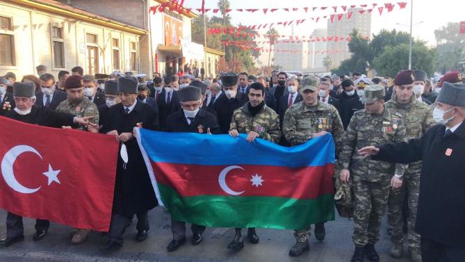 100. yıl coşkusu Cumhuriyet Meydanında da devam etti. Vali Su, Tuğamiral Gedik ve Başkan Seçer’in Atatürk Anıtı’na çelenk sunumuyla başlayan tören, saygı duruşu ve İstiklal Marşı’nın okunmasıyla devam etti. Vali Su, Tuğamiral Gedik ve Başkan Seçer’in, cipe binerek kutlamalara katılanların kurtuluş bayramını kutladığı törene, Karabağ Savaşında gazi olan Azerbaycanlı askerler de katıldı.