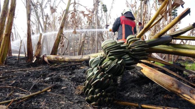 Muz bahçesi yanan Şakir Turhan, “Seranın oradan yangın çıkmış. Sera naylonu tutuşunca rüzgarla benim bahçeye de sıçramış. Bahçemin dörtte üçü yanmış. Damlama sulama sistemi yanmış, ne yapacağız bilmiyorum” dedi. (Mersin Times)