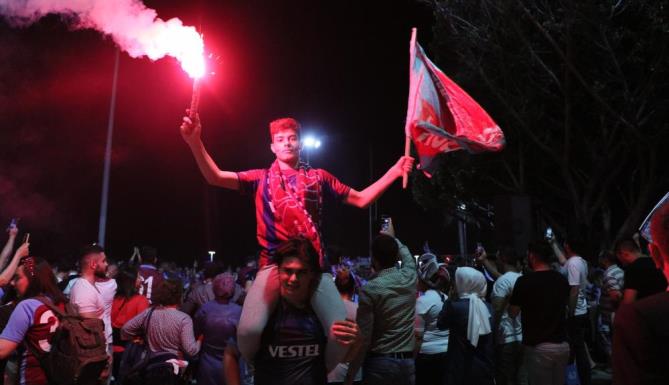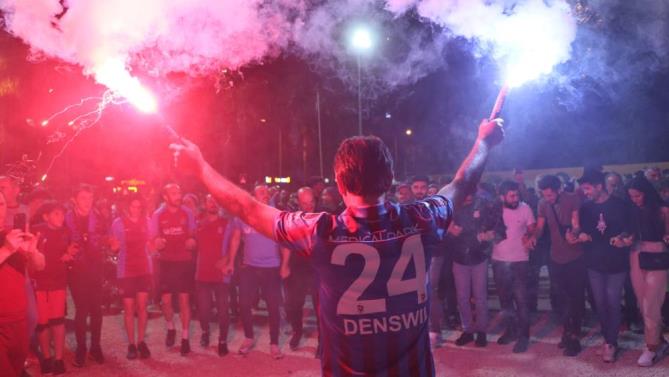 Süper Lig’de Antalyaspor ile sahasında 2-2 berabere kalan Trabzonspor, 38 yıl aradan sonra şampiyon oldu. Trabzonspor’un şampiyonluğunu ilan etmesinin ardından Mersin’deki Trabzonsporlu taraftarlar, merkez Yenişehir ilçesi Adnan Menderes Bulvarı sahilindeki Özgecan Aslan Meydanı’na akın etti.