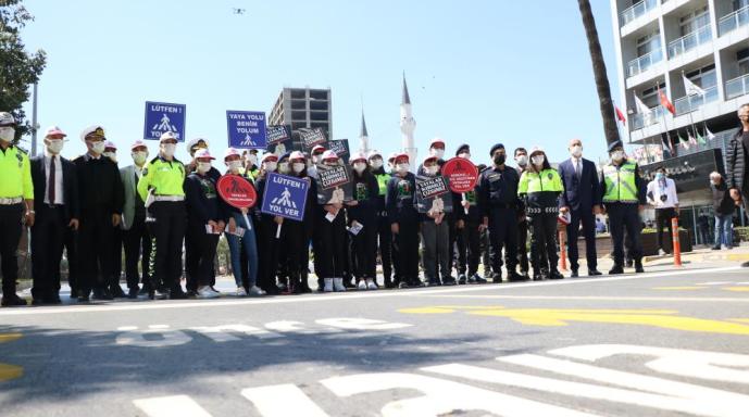 İçişleri Bakanlığının hayata geçirdiği ‘Yayalar Kırmızı Çizgimiz’ kampanyası, tüm Türkiye’de olduğu gibi Mersin’de uygulamaya konuldu. Mersin Valisi Ali İhsan Su, Akdeniz Bölge ve Garnizon Komutanı Tuğamiral Fuat Gedik, İl Jandarma Komutanı Albay Necip Çarıkcıoğlu, İl Emniyet Müdür Vekili Ömer Akpınar ile Sahil Güvenlik Akdeniz Bölge Komutanı Oğuz Bavbek uygulamanın startını verdi. Mersin Trafik Denetleme Şube Müdürlüğü tarafından İsmet İnönü Bulvarı Ulu Cami önünde gerçekleştirilen etkinlikle, yaya geçitlerindeki bazı çizgiler kırmızıya boyandı. Ayrıca protokol üyeleri ve öğrenciler, ellerindeki dövizlerle sürücüleri bilgilendirdi.