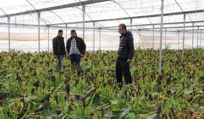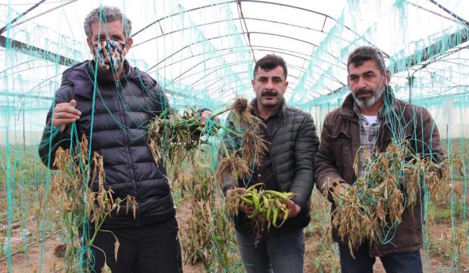 Yüksek kesimlerinde karın, kıyı kesimlerinde ise yağmurun etkili olduğu Mersin’de çiftçilerin korkulu rüyası zirai don hadisesi yaşandı. Akdeniz ilçesi Kazanlı Mahallesinde yoğunlukla sera üretimi yapan çiftçilerin daha yeni yeni ürün almaya başladıkları kabak, biber, domates, patlıcan, salatalık gibi sebzeler, yeşillikler ve muz aşırı soğuk nedeniyle yandı. Meteorolojinin yaptığı uyarıları dikkate aldıklarını anlatan örtü altı üreticileri, seralarda soba yakmalarına karşın zirai dondan kaçamadıklarını söyledi.