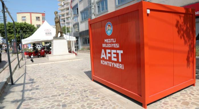 Mezitli Belediyesinden yapılan açıklamada, İzmir depreminin ardından vatandaşların farkındalığını artırmak için bir dizi çalışma yapıldığı belirtildi. Bu kapsamda, kentin ilk acil durum konteynerinin Gazi Mustafa Kemal Bulvarı üzerindeki Zabıta Müdürlüğü binası önüne yerleştirildiği bildirilen açıklamada, konteynerde olası deprem durumunda lazım olan tüm gerekli malzemelerin yer aldığı ifade edildi.