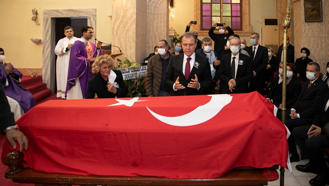 Konuşmaların ve duaların ardından Başkan Seçer tarafından Lina Nasif’in tabutunun üzerine Türk Bayrağı örtüldü ve tabut alkışlar eşliğinde Katolik Kilisesi’nden çıkarıldı. (Mersin Times)