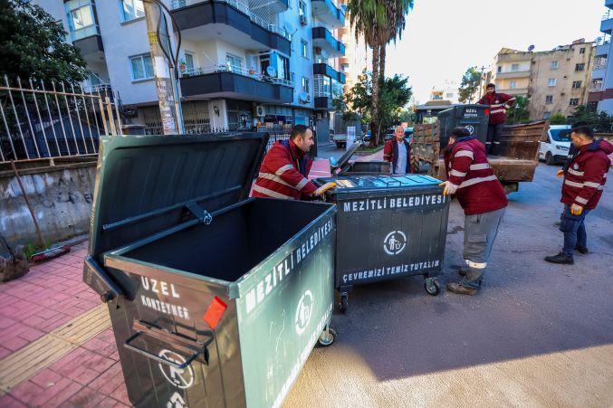 Öte yandan, evsel atıkların toplanmasında daha dayanıklı ve uzun ömürlü olması nedeniyle galvanizli konteynerler yerine elektrostatik boyalı konteynerler tercih ediliyor. Bu sayede konteynerlerin kullanım süresi uzatılarak hem maliyet olarak artıya geçiliyor hem de daha sağlıklı bir atık toplama sistemi oluşturuluyor. Mezitli Belediyesi Temizlik İşleri ekipleri, çevre temizliğinin sürdürülebilirliği açısından vatandaşların da hassasiyet göstermesinin önemine dikkat çekerek, evsel atıkların ağzı kapalı poşetler içerisinde konteynerlere bırakılması ve moloz gibi farklı nitelikteki atıkların çöp konteynerlerine atılmaması konusunda duyarlılık çağrısında bulundu.