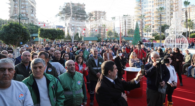 Her yıl olduğu gibi bu yıl da yılbaşı kutlamalarının adresinin Mezitli Demokrasi Meydanı olduğunun altını çizen Başkan Tarhan, Yılbaşı Pazarının açılışında yaptığı konuşmada, Mezitli’nin Türkiye’nin en güzel kentlerinden birisi olduğunu dile getirdi. Kendisinin yurtdışında çok farklı yerlere gittiğini belirten Tarhan, “Şunu açık yüreklilikle söylüyorum ki, şuan Mezitli’de yaşanan coşku o çok bilinen dünya şehirlerinin çok fazla üzerinde. Mezitli çok özel bir şehir ve biz de bu güzel insanlara hizmet etmek için tüm ekibimizle gece gündüz demeden çalışıyoruz. 2022 boyunca her kesimden vatandaşımızın yanında olmaya devam ettik. Down sendromlu gençlerimizle projeler ürettik. Otizm Köyümüzü, Mezitli Kültür Merkezimizi hayata geçirdik. Taziye evleri açtık. Önümüzdeki yılda Kız Öğrenci Yurdumuzu, Mutlu Yaşam Merkezimizi hizmete sokmayı planlıyoruz. Daha pek çok projeyi halkımız için ekibimizle birlikte yapmaya devam edeceğiz” dedi.