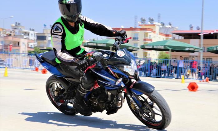 Mersin'in merkez ilçe Toroslar Belediyesi'nin 'motosiklet sürüş becerileri etkinliğinde' buluşan motor tutkunları, yaptıkları hareketlerle nefes kesti. 2'si çocuk, 4'ü kadın 29 motor tutkunu, gösterileriyle büyük beğeni aldı.