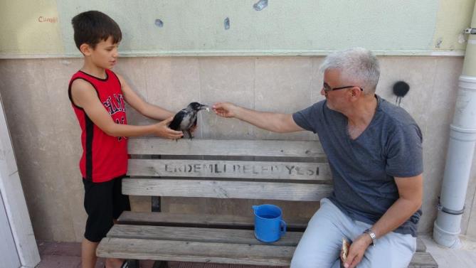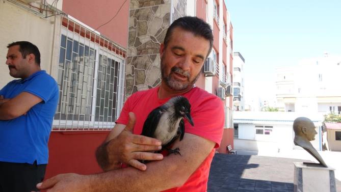 Karga, bir süre daha okulda misafir edilecek. (Mersin Times)