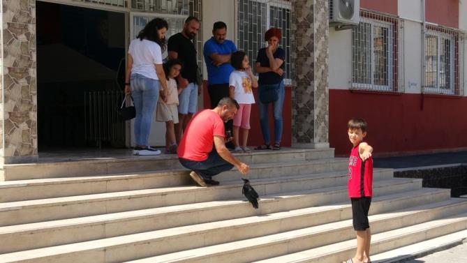 Hayvan dostu bir okul olduklarını da anımsatarak bilgi veren Taş, “Bir tane minik misafirimiz var. Okula kayıt olmaya geldiğini düşünüyoruz. Sıcaklardan etkilendi zannedersem. Besledik, soğuttuk, suyunu verdik. Artık okulumuzun bir üyesi oldu, kargamız” diye konuştu.