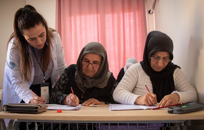 Saliha Kurtboğan 67 yaşında ve okuma-yazma öğrenmek için kursa gelen kadınlardan birisi. 9 çocuğu olduğunu söyleyen Kurtboğan, içinde hep okuma yazma hevesi olduğunu belirterek, “Kaç senedir içimde kaldı. Bir yere gittiğim zaman bir tabela okuyamazdım. Arabaları bilmiyorum diye yola çıkamıyordum. ‘Mutlaka buraya geleceğim, okuyacağım’ dedim. Kaç sene sürerse sürsün geleceğim, öğreneceğim” cümleleriyle azmini anlattı.