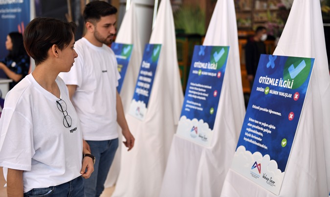 Hafta boyunca uzman görüşlerinden aile seminerlerine kadar birçok etkinlikle farkındalık yaratan Büyükşehir, Merkez Mola Evi ekibiyle Palm City AVM’de otizm farkındalığı için anlamlı bir sergi açtı. Sergide şövalelerin üzerindeki pankartlarda otizmle ilgili doğru bilinen yanlışlar ile ‘otizmin farkındayız onların yanındayız’, ‘otizm bir eksiklik değil farklılıktır’, ‘erken tanı ve yoğun eğitimle otizm belirtileri kontrol altına alınabilmektedir’, ‘otizm spektrum bozukluğu doğuştan gelen ya da yaşamın ilk yıllarında ortaya çıkan bir nörogelişimsel farklılıktır’ gibi bilgiler yer aldı.