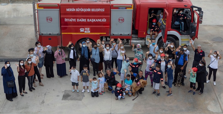 Engelliler ve Sağlık Hizmetleri Dairesi’ne bağlı Engelsiz Yaşam Merkezi’nde birçok alanda uzmanlar tarafından destek alan özel gereksinimli çocuklar, Büyükşehir Belediyesi Mezitli İtfaiye Grup Amirliği’ne getirildi. İtfaiye üniforması giydirilen çocuklara ilk olarak yangın sırasında ne yapmaları gerektiği konusunda bilgilendirme yapıldı. Çocuklar, bilgilendirmenin ardından heyecan dolu bir serüvene başladı. Kendilerine özel olarak hazırlanan yangın söndürme tulumbalarının başına geçen minik itfaiyeciler, alanda yakılan ateşe müdahale etti.