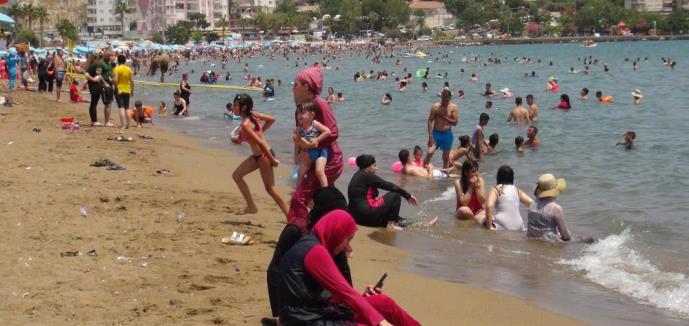 Mersin’in Silifke İlçesinde Kurban Bayramının son gününde vatandaşların akınına uğrayan plajda adım atacak yer kalmadı.