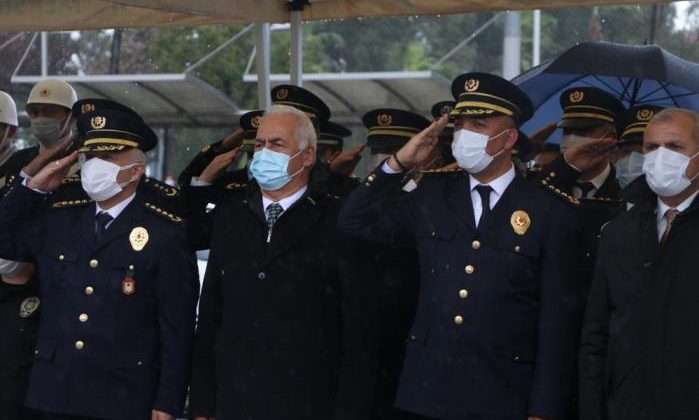 Mersin’de Türk Polis Teşkilatının Kuruluşunun 176. Yıl Dönümü, korona virüs salgını nedeniyle alınan önlemler ve yağmur altında buruk kutlandı.