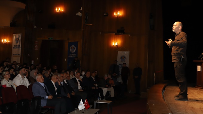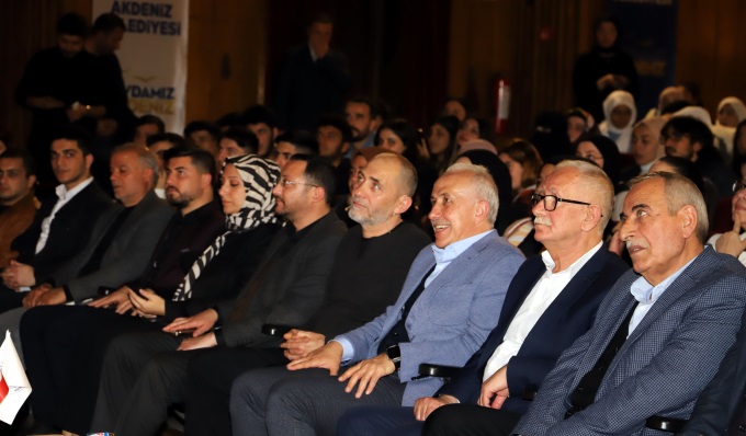 Eğer sizler, beni kalbiniz ile dinlerseniz, bugün bu salondan çıktığınız andan itibaren işlerinize, hayatınıza, bakışınız değişir. Bunun için elimden geleni yapacağım. Sizler de kazanımla çıkarsanız, kendinizin daha farkında olursunuz. Üzerimde emeği olan anne babamdan ceddime, hocalarıma, arkadaşlarıma, burayı şereflendiren sizlere ve bizleri sizlerle buluşturan Akdeniz Belediye Başkanı M. Mustafa Gültak’a teşekkür ederim” diye konuştu.