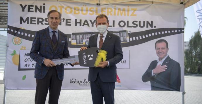 Filoya yeni katılacak 87 otobüslerin dışında 100-120 arasında yeni otobüs alımı yapacaklarını ifade eden Seçer, “Özellikle yeni edineceğimiz 87 aracın dışında toplamda da 100-120 arasında bir araç alımı daha gerçekleştireceğiz. Bunu da Avrupa İmar ve Kalkınma Bankası’nın bize sağladığı bir imkanla gerçekleştireceğiz. 22 milyon Euro’luk bir kredi mutabakatı sağlandı. Bunun 7 milyon Euro’luk kısmı hibe olacak, 10 yıl ödemeli. Mersin Büyükşehir Meclisimiz’de, Meclis üyelerimizin desteğiyle bu borçlanma yetkisi tarafıma verildi ancak şu anda Sayın Cumhurbaşkanı’nın önünde, onun imzalaması gerekiyor, yatırım programına alması gerekiyor. Daha sonra da Lütfi Elvan Bakanımızın, Hazine Bakanımızın bunu onaylaması gerekiyor. Bu süreci bekliyoruz. Bir hayli de zamanımız geçti. Umut ediyorum çok kısa bir zaman diliminde bu gerçekleşecek” diye konuştu.