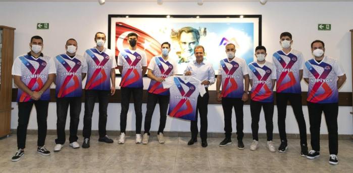 Türkiye Basketbol 1. Ligi’ne çıkmayı başaran Mersin Büyükşehir Belediyesi Gençlik ve Spor Kulübü (GSK) Erkek Basketbol Takımı oyuncuları, Büyükşehir Belediye Başkanı Vahap Seçer ile bir araya geldi. Ziyarette Başkan Seçer’e, ön tarafında ‘şampiyon’, arka tarafında da ‘Vahap’ yazılı forma hediye edildi. Ayrıca finalist plaketi de Başkan Seçer’e takdim edildi.