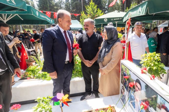 Programda, Kur’an-ı Kerim tilavetinin ardından, şehitler için Mersin İl Müftüsü Aydın Yığman tarafından dua okundu. Başkan Seçer ve protokol üyeleri şehit mezarlarına karanfil bırakarak, şehit aileleri ile bayramlaştı. Seçer, Şehitlik ziyaretinin ardından programa katılım sağlayan kent protokolü ile de bayramlaştı.