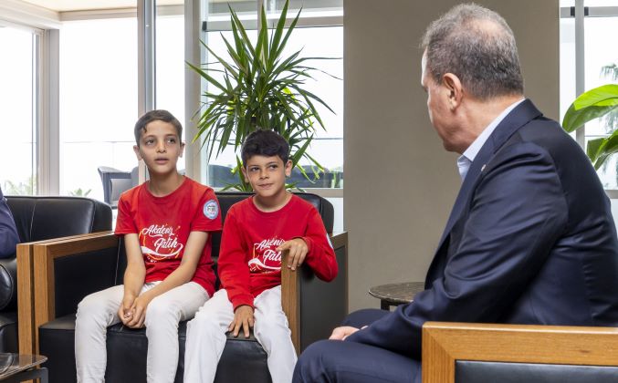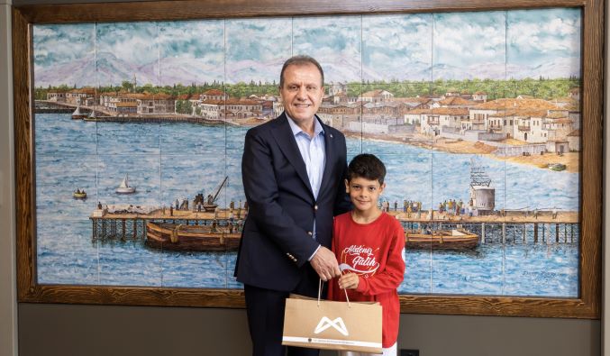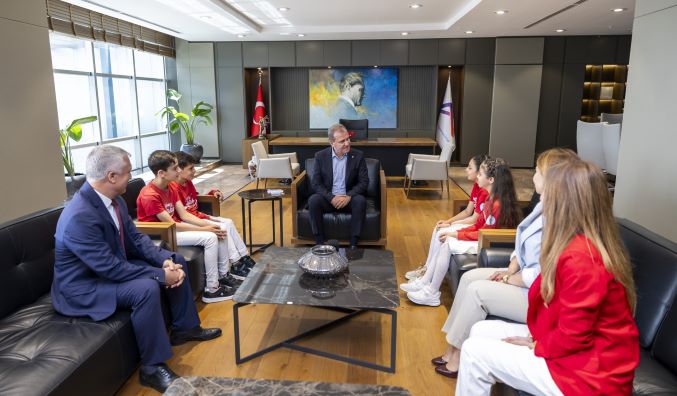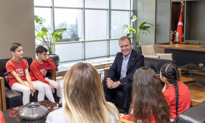 23 Nisan Ulusal Egemenlik ve Çocuk Bayramı’nın sevincini yaşayan öğrenciler Mersin Büyükşehir Belediye Başkanı Vahap Seçer’i ziyaret etti. Ziyarette; Akdeniz İlçe Milli Eğitim Müdürü Saim Demir, Akdeniz Fatih İlkokulu Müdürü Dilek Göl ve okulun öğrencileri İlayda Özyar, Yasin Çiftçi, Yasmin Almansour, Çınar Yardımcı ve öğretmenleri Gamze Berk yer aldı.
