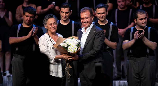 Oyunun sonunda sahneye davet edilen Başkan Seçer, yeni sezonun açılışında sahnelenen oyunda gösterilen üstün başarıyı tebrik ederek, “Çalışmanın, emeğin önünde hiçbir şey duramaz. Bu arkadaşlarımızın hepsi sanatçı. Bizler birer bireyiz, hepimizin bir görevi var, ama sanatçı ayrı. Sanatçı doğulur, sonradan olunmaz. Sonradan zanaatkar olunur, ama sanatçı olunmaz. Çünkü sanatçılık, onların genetik kodlarında var. Sanatçılara büyük saygı duyuyorum” dedi.