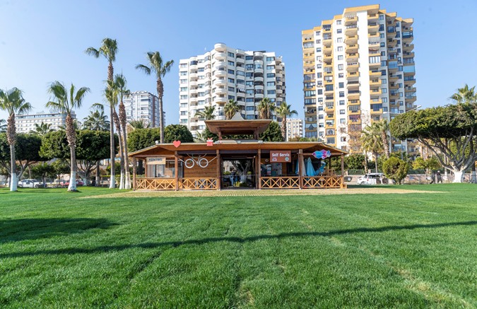 Alanda bulunan Survivor Kafe için de çim taşıyla yaz-kış kullanılabilecek oturma alanı yapıldı ve kafe girişinin peyzaj düzenlemesi yapıldı. Alanda küçük çocuklar tarafından kullanılan kum oyun grubu genişletilirken, parka gelen ebeveynlerin çocuklarını beklerken oturup, dinlenebilmeleri için de alana hem denizi hem de parkı görecek şekilde çift taraflı banklar yerleştirildi. Ayrıca kısa süre önce de ‘Survivor Eğlence Parkı’nda yer alan oyun gruplarının da bakım çalışmaları tamamlanmıştı.