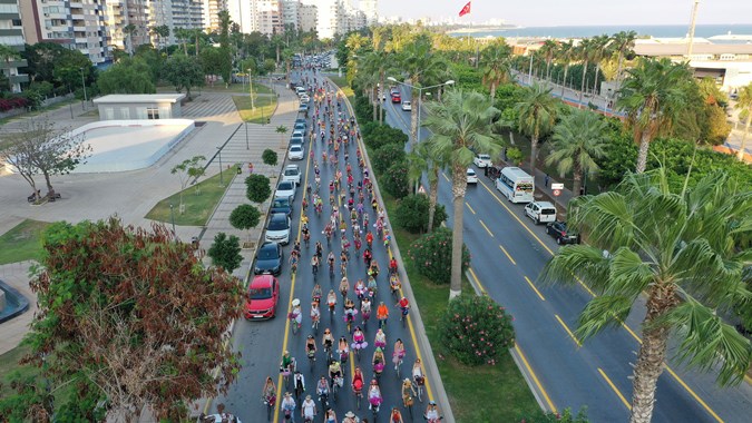 Hafta kapsamında Büyükşehir Belediyesi’nin katkılarıyla ‘Süslü Kadınlar Bisiklet Turu’ düzenlendi. Sahil boyunca rengarenk kıyafetleriyle bisiklet süren kadınlar, sürdürülebilir ve aktif bir ulaşım farkındalığı için pedal çevirdi.