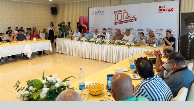 Toplantıda Tarsus ve Tarsus’un geleceği ile ilgili konuşan Başkan Boltaç; “Bugün burada, “Tarsus’ta Gelecek Var” mottosuyla, bu kadim şehrin son 100 gününde gerçekleştirdiğimiz çalışmaların detaylarını paylaşmak için bir araya geldik. Katılımlarınızdan dolayı hepinize teşekkür ediyorum. Tarsus, kültürü, doğası ve üretkenliği ile tarih boyunca parlayan bir yıldız olmuştur. Bu kadim topraklarda yaşayan herkes gibi bizler de Tarsus’un sahip olduğu potansiyelin farkındayız ve bu potansiyeli en iyi şekilde değerlendirmek için var gücümüzle çalışıyoruz. 1 Nisan’da göreve geldiğimiz günden itibaren, Tarsus’un hak ettiği gelişimi sağlamak için büyük bir kararlılıkla ve azimle çalışıyoruz. Şeffaf, katılımcı ve halk odaklı bir yönetim anlayışıyla Tarsus’un her bir köşesinde büyük bir heyecan ve titizlikle çalışmalarımızı sürdürüyoruz.” dedi.