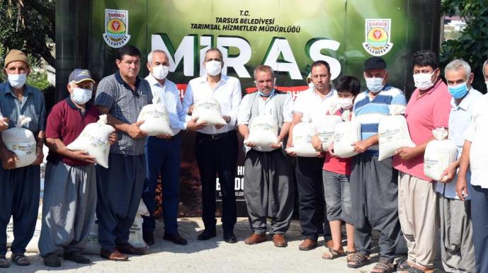 Tarsus Belediyesinden yapılan açıklamaya göre, Başkan Haluk Bozdoğan’ın öncülüğünde başlatılan ‘Ata Tohumu’ projesi kapsamında atalık buğday ve arpa tohumları toprakla buluşmuştu. O tohumlardan hasat edilen ürünlerden bir kısmı vatandaşların sofrasına ulaşırken 16 tonluk kısmı da atalık tohum olarak yeniden değerlendirilmek üzere 50 çiftçiye dağıtıldı. Böylece çiftçiler topraklarına atalık tohum ekerek yöreye özgü türleri yetiştirecek, belediye verdiği tohumun 2 katını gelecek hasat sezonunda alarak sürdürülebilirliği sağlayacak. Proje ile hem çiftçiye tohum desteği sağlanacak hem de Tarsus Belediyesinin tohum bankası her geçen yıl elindeki miktarı artıracak.