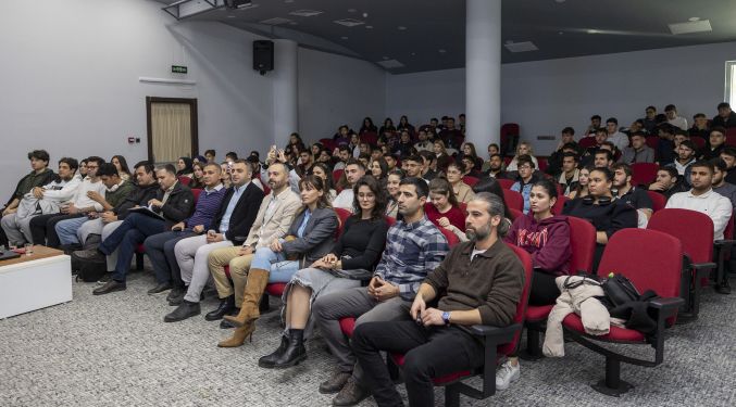 Düzenlenen bir diğer seminerde ise Astronom Merve Oylum, ‘Multidisipliner Bir Alan: Uzay’ başlıklı sunumuyla öğrencilerle buluştu. Oylum, uzay çalışmalarının birçok farklı disiplinin iş birliğiyle yürütüldüğüne dikkat çekerek, öğrencilerin kendi bölümleri ile astronomi arasında bağ kurmalarını sağladı. Seminerde uzay teknolojilerine yönelik farkındalık artırılırken, farklı disiplinlerin ortak çalışmasının önemi vurgulandı. Program kapsamında son olarak öğrenciler, planetaryum gösterimiyle uzay ve evren konularında görsel bir deneyim yaşadı.