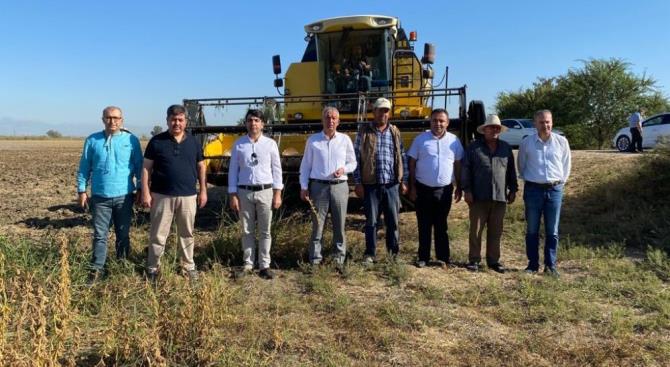 Hasat programına Mersin İl Tarım ve Orman Müdürü Arif Abalı, İl Müdür Yardımcısı Mustafa Can, Tarsus İlçe Tarım ve Orman Müdürü Hayri Erdoğan, Bitkisel Üretim ve Bitki Sağlığı Şube Müdürü Azmi Murat Erdem’in yanı sıra İl ve İlçe Tarım Müdürlüklerin teknik personelleri ile üreticiler katıldı. “Yerli ve Milli Tohumlarımızın Ulaşmadığı Çiftçi Kalmasın” sloganıyla yola çıkılarak Tarımsal Araştırmalar Genel Müdürlüğü ile Türkiye Tohum Sanayicileri ve Üreticileri Alt Birliği (TSÜAB) arasında imzalanan protokol kapsamında; tescil ettirilen yerli ve milli çeşitlerin çiftçi şartlarında demonstrasyon çalışmaları; il, ilçe tarım ve orman müdürlükleri aracılığı ile 41 ilde başlatıldığını belirten İlçe Tarım ve Orman Müdürü Erdoğan, 2020-2021 üretim sezonu için bu sayının 65 ilde, 36 türde, 174 çeşitle, 962 lokasyona ulaşması planlandığını belirtti. Erdoğan, “Bu kapsamda yerli ve milli çeşitlerin çiftçilerle buluşması ve bölgemizde yaygınlaşması için Tarsus İlçe Tarım ve Orman Müdürlüğümüzce 2018 yılından bu yana Doğu Akdeniz Tarımsal Araştırma Enstitüsünce geliştirilen 3 adet Arpa çeşidi denemeleri yapılmış ve bu çeşitlerin yüksek verimli ve kaliteli 2 tanesi Ay ve Güldeste isimleri ile tescil edilerek bölgemiz ve ülkemiz üreticilerinin hizmetine sunulmuştur. 2020-2021 sezonunda yine bu bağlamda yapılan çalışmalar ile 3 adet buğday çeşidinin demostrasyonları kurulmuş ve takipleri yapılmış diğer bölgelerdeki sonuçlar ile değerlendirmeler yapılmaktadır. Yine Tarsus ilçemizde Karadeniz Tarımsal Araştırma Enstitü Müdürlüğünce 2019 yılında tescili alınan Samsoy soya çeşidi 9 Haziran 2021 tarihinde Ballıca Mahallemizde halihazırda tarımı yapılan çeşitlerle aynı araziye ekilmiş ve müdürlüğümüz personellerince takibi yapılmış hasat olgunluğa gelmiştir” dedi.