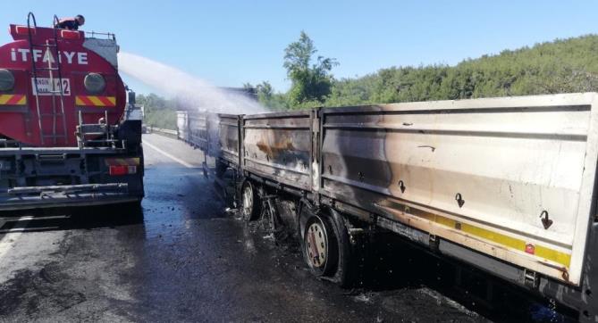 Alınan bilgiye göre, Tarsus-Pozantı istikameti TEM Otoyolu kavşaklar bölgesi çöp deposu alanı yakınlarında E.Ö.’nün kullandığı inşaat demiri yüklü 42 CLP 93 çekici plakalı tırın dorse bölümünde yangın çıktı. Balataların ısınması nedeniyle çıktığı tahmin edilen yangını fark eden sürücü, aracı güvenlik şeridinde durdurdu. İhbar üzerine olay yerine gelen Mersin Büyükşehir Belediyesi itfaiye ekipleri yangına müdahale ederek söndürdü. Araçta hasarın oluştuğu yangında şans eseri yaralanan olmadı. (Mersin Times)