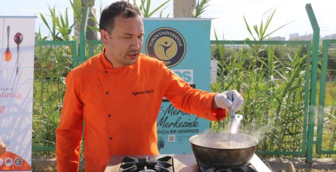 Gastronomi ve Mutfak Sanatları Bölümü Başkan Yardımcısı Dr. Öğr. Üyesi Çağla Özbek ise “Toros Üniversitesi olarak Asırlık Tariflerle Türk Mutfağı kitabında yer alan Mersin mutfağına özgü lezzetleri tanıtabileceğimiz bir menü oluşturduk. Bugün bu menüyü gastroshowa dönüştüreceğiz. Menümüzde köy ekmeği, kestaneli yahni, yeşil zeytin salatası, ayran aşı çorbası, dövme pilavı, limonlu pelte ve demirhindi şerbeti yapılacak aynı zamanda tantuni yapımını göstereceğiz. Tantuni bildiğiniz üzere coğrafi İşaretli ürünlerimizden bir tanesi. Bu şekilde etkinliğimizi tamamlayacağız. Umarım önümüzdeki senelerde de Türk Mutfağı Haftası bu şekilde kutlanır” dedi. (Mersin Times)