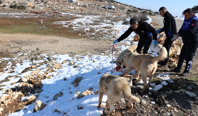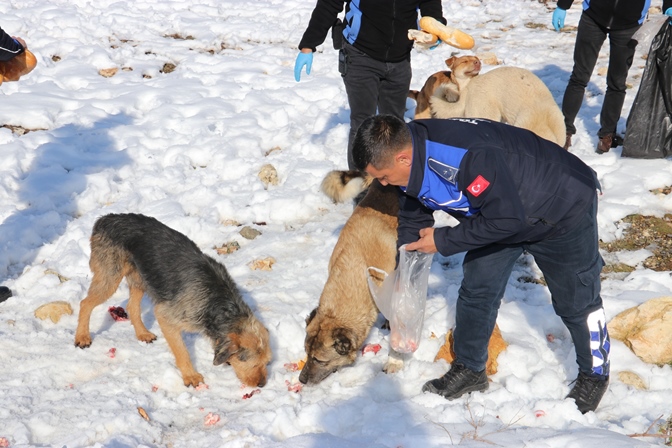Toroslar Belediyesinden yapılan açıklamaya göre, karla mücadele çalışmalarını gece gündüz sürdürerek vatandaşların yanında olan belediye, bu soğuk havalarda sokakta kalan can dostlarını da unutmadı. Zabıta Müdürlüğü ekipleri, hafta sonu ilçenin yaylalarını ziyaret ederek sokak hayvanları için belirli noktalara yiyecek bıraktı. Ekipler, sokak hayvanlarını elleriyle tek tek besledi.